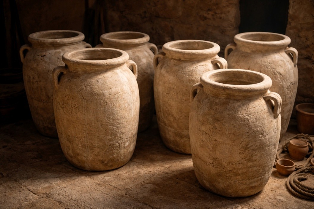 Sechs steinerne Wasserkrüge standen zu Kana, nicht zur Zierde, sondern zum Gesetz, zur Pflicht, zur Reinigung. Krug um Krug, Tag für Tag. Und doch: der Wein auf der Hochzeit ging dennoch aus. Das Gesetz kann äußerlich reinigen, aber es kann keine Freude schenken. Es benennt den Schmutz, tilgt ihn aber nicht wirklich. Erkennst du dich wieder? Hast du durch religiöse Routine die Freude erzwingen wollen und fandest am Ende nur einen leeren steinernen Krug? Der Herr der Herrlichkeit betritt die Hochzeit – und befiehlt: „Füllet die Krüge mit Wasser.“ Nicht mit neuem Krug, nicht mit anderem Gesetz. Mit schlichtem, klarem Wasser. Und die Diener gehorchen, ohne zu fragen, ohne zu sehen. Bis obenan. Dieses Wasser ist das Wort Gottes: Christus hat die Gemeinde geliebt und geheiligt, „sie reinigend durch das Wasserbad im Wort“ (Eph 5,26). Fülle deinen Krug – täglich, hungrig, im Glauben.